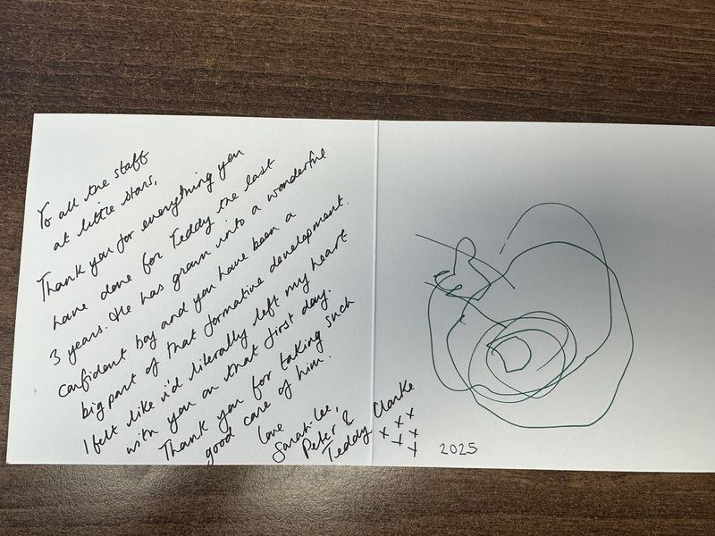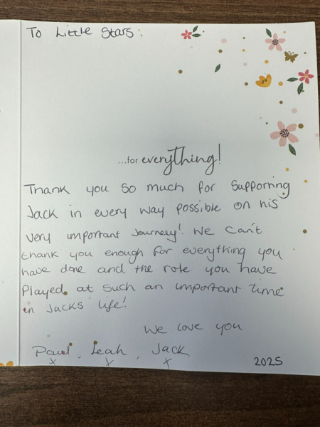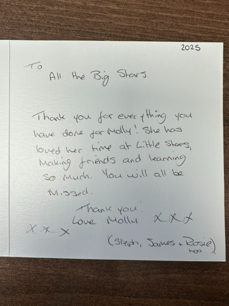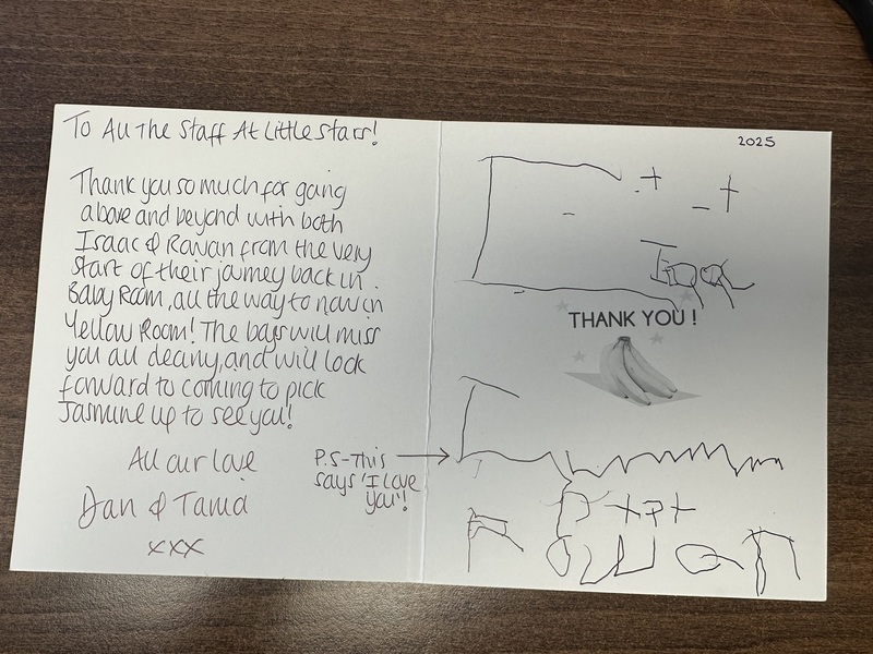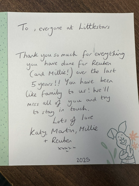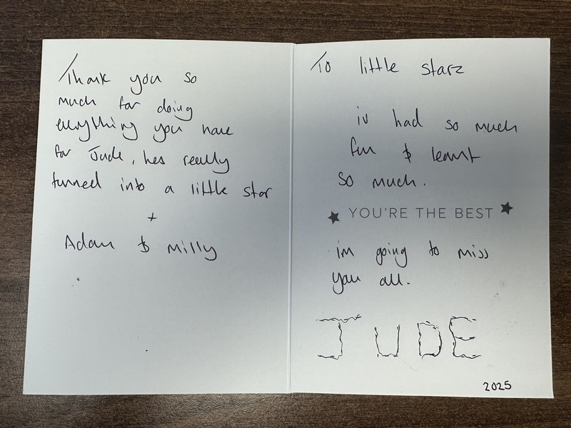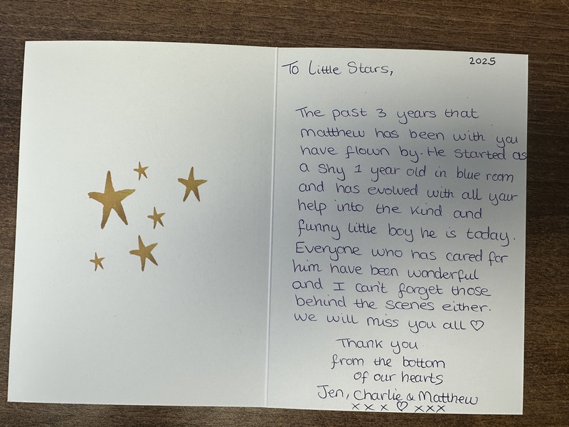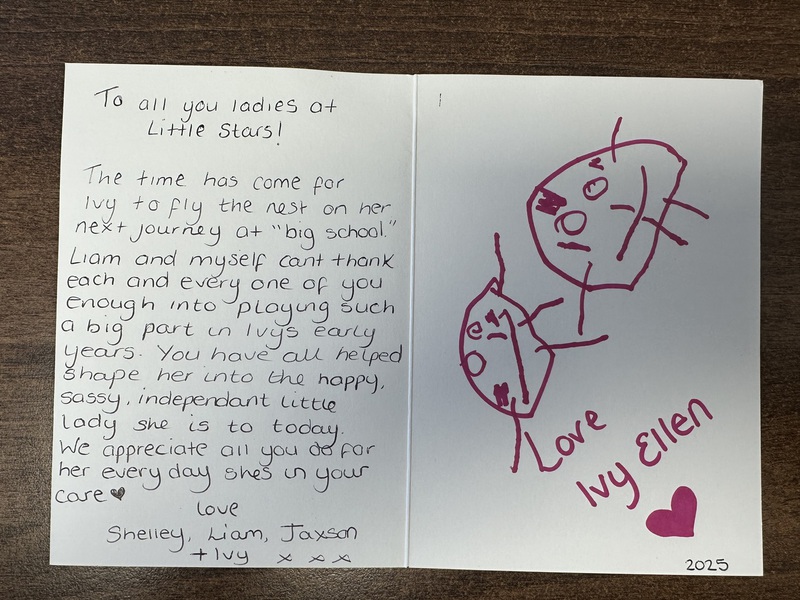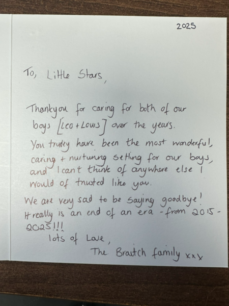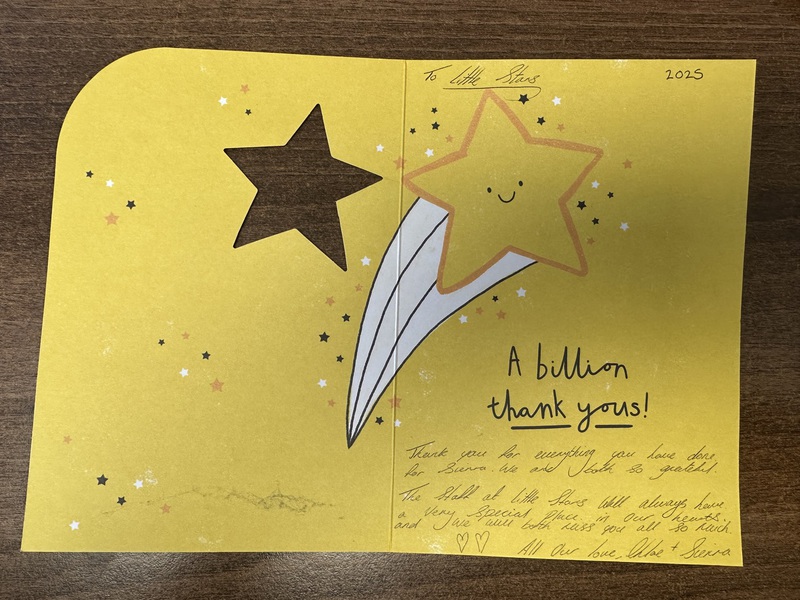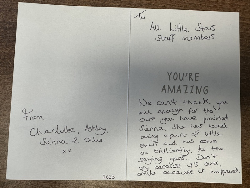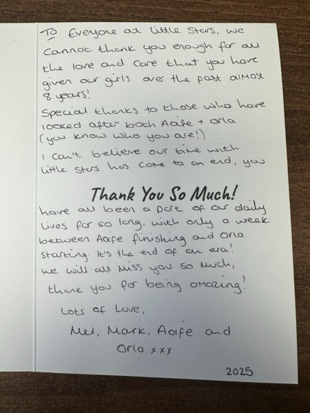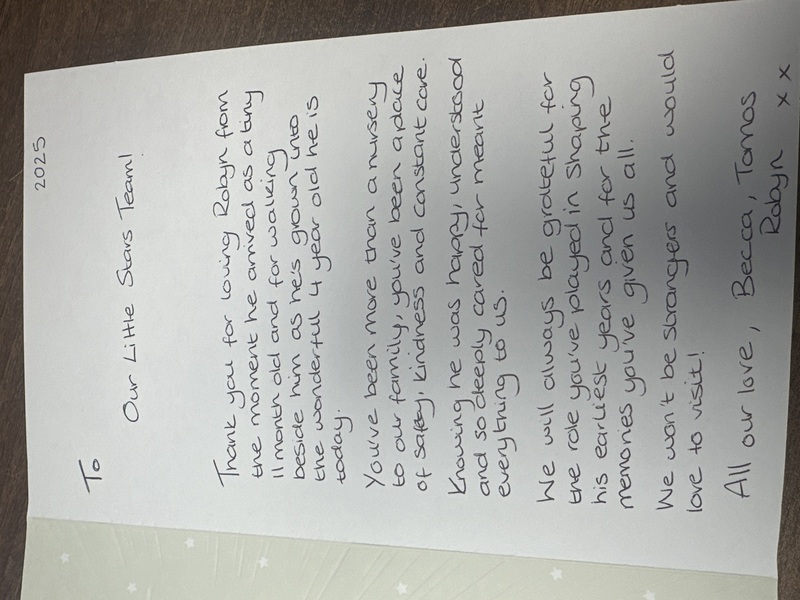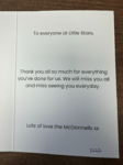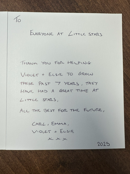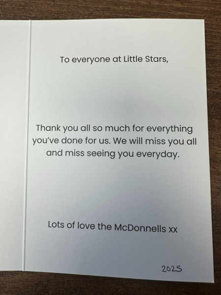 I wanted to take this opportunity to say, that although my time at little stars has been brief, I have loved every minute of it. I've been made to feel very welcome, Laura and lou, have been so
