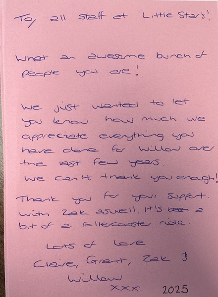 To Ellie, Julie and all the wonderful staff at Little Stars,